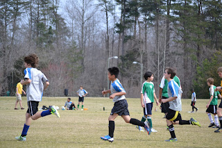 The championship game for the tournament was last week. We thought we had it in the bag. It's a dangerous thing to think that way. B's team ended up losing 2-1. I felt so bad for those boys. In the fall, they finished in second place by penalty kicks. And this time they lost by a single goal. Tough times. Lessons were learned.